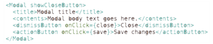 In Bootstrap they took a very clever approach. Instead of defining props all over the place, they gave us the ability to directly manipulate the modal’s children. Using dedicated components, we can achieve the intended functionality that Bootstrap was aiming for: